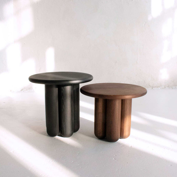 A collection of tables designed to work independently or as a group of nested pieces. Each table is comprised of five rounded legs and a rounded top. Custom colours, sizing and heights are available upon request.